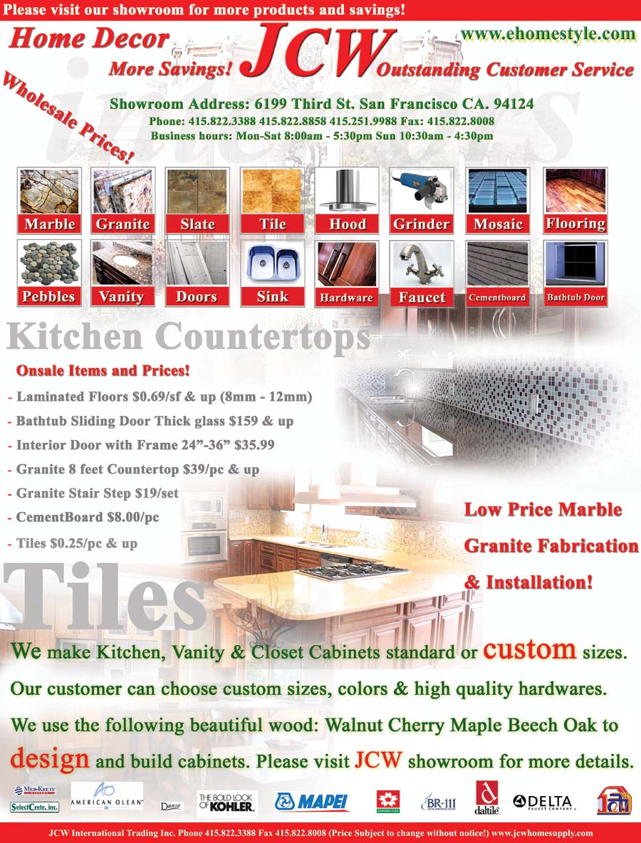 Kitchen Cabinets Tiles Granites Marbles Building Materials @ ehomestyle Phone: 1.415.822.3388 |